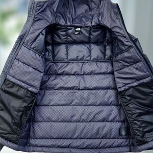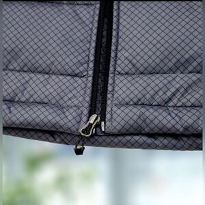 Quilted polyester shell with Durable Water Repellent (DWR) finish
