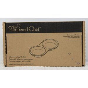 NEW The Pampered Chef Microwave Egg Cooker 1372 Stoneware Double Beige Scraper