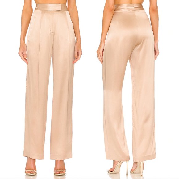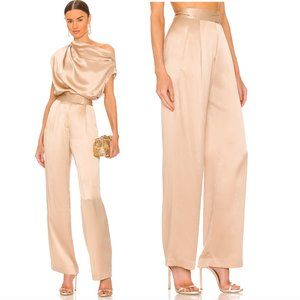 NEW The Sei x REVOLVE Wide Leg Trouser Pant Champagne Nude Tan Silk Size 4 Small