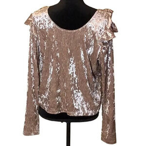 NEW The Vanity Room Size Small Pink Ruffle Long Sleeve Velvet Top