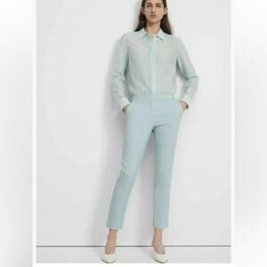 NEW Theory Linen Blend Sky Blue Treeca Pull On Pants Women's 16 Eco Crunch Wash