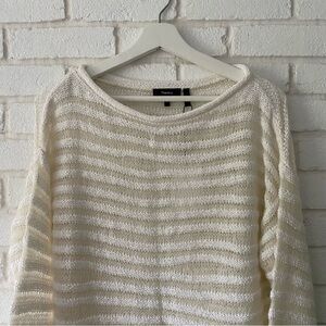NEW Theory Links Sughero White Striped Pullover Sweater