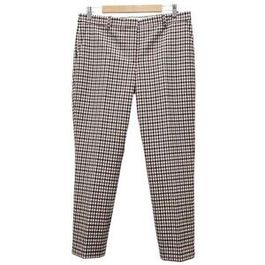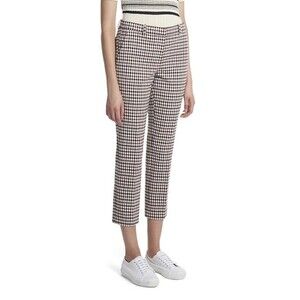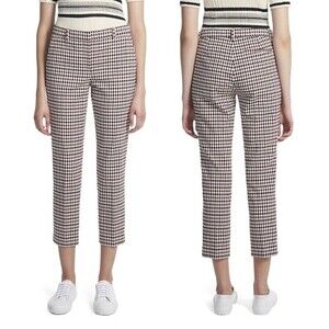 NEW Theory Treeca Ivory Portland Plaid Cropped Pants Size 10 Black Red Cream