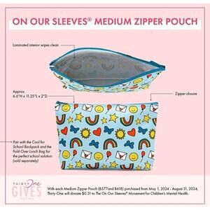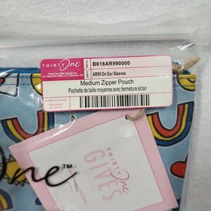NEW Thirty-one 31 Zipper Pouch On Our Sleeves Rainbow Heart Butterfly Sun Medium