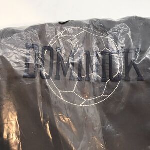 NEW Thirty-one Spirit Cinch Sac Backpack. Polyester, Spirit Grey, Drawstring Soccer or Gym Bag with Zipper Pockets. Measures 18.5" x 14.5". (Dominick and a Soccer Ball is embroidered on the bag. Not sure if that is a professional Soccer Player or a personal name.)