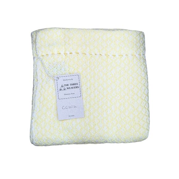 NEW Three Weavers Vtg Baby Blanket Cotton Handwoven Yellow 52x37 Cottage Prairie