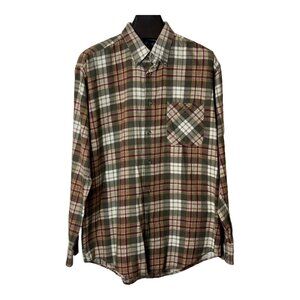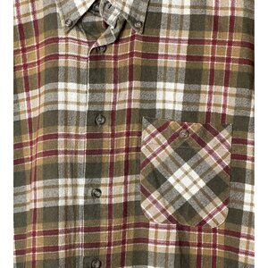NEW Thunder Olive Green & Red Plaid Button Down Flannel Long Sleeve Shirt Medium