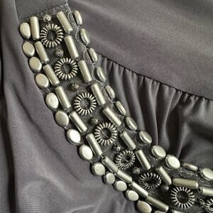 NEW Tiana B Cocktail Dress Embellished Grey Silver Stones Stretch Jacket Overlay