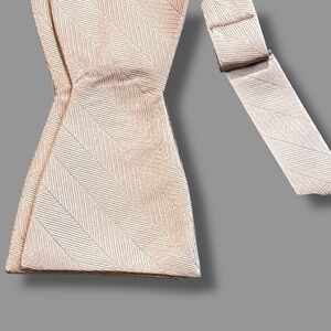 NEW Tie Bar Bow Tie 100% Silk Herringbone Vow Preppy Wedding Adjustable Neutral