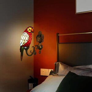 Parrot Design: The Tiffany Wall Lighting is the creative design of high quality wall light. The lampshade is handmade stained glass with parrot design, It's perfect for the