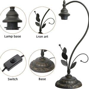 Stained glass lamp: The base is made of resin. Metal support rod Sturdy and durable, the total weight is about 1.7KG. Power cord length is 1.63m, easy to install - easy to assemble and can be completed without any tools. Comes with 1 E26 bulb 12w 3000K.