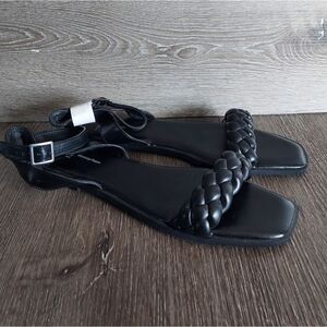 NEW Time And Tru Women's Size 11 Black Braided Ankle Strap Buckle Sandals
