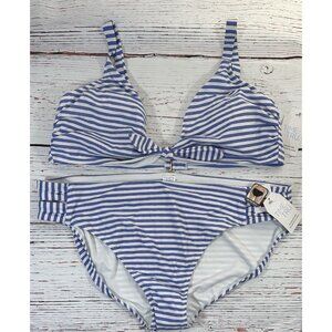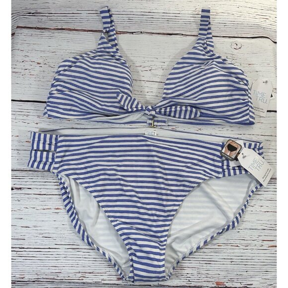 NEW Time and Tru Bikini Womens Plus Size 3X Swim Top & Bottoms Set Blue Stripes