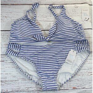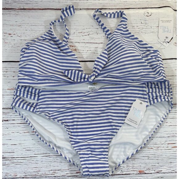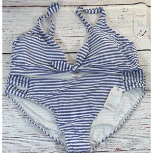NEW Time and Tru Bikini Womens Plus Size 3X Swim Top & Bottoms Set Blue Stripes