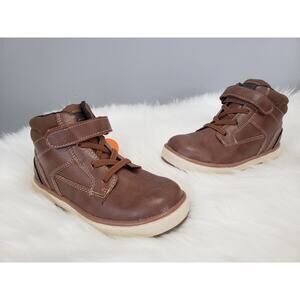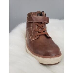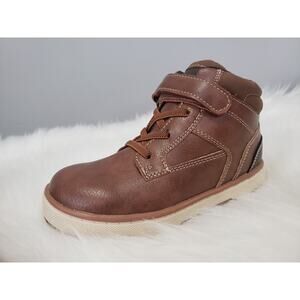 NEW Toddler Easy On Off Boot Size 5 Brown Winter fall Faux Leather Combat biker