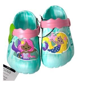 NEW Toddler Girls MERMAID CLOG SHOES Water Friendly Size 7 Teal Pink Back Strap - NEW with Tags!
