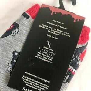 These new socks are ready to wear! They feature printed graphics and are no-show. See pictures for details and measurements. Size is shoe size 4-10.