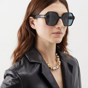 NEW Tom Ford FT1032-F ROMY 01A Shiny Black Blue Square Oversized Women Sunglasses