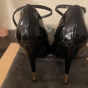 Tom Ford heels like new, never worn! Size 8 but fits narrow. The locks have some wear and the bottoms painted! Great buy! Comes from smoke free and pet free home and includes the shoe box and shoe bags! Original Neiman Marcus purchase.