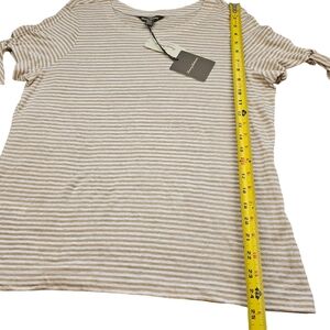 NEW Tommy Bahama Belo Stripe Linen Tan & White Short Sleeve Tee Shirt Size M