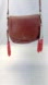Features: Leather crossbody with heavy red beaded tassels, saddle style purse, Adjustable strap with buckle, inside zippered pocket, inside leather logo