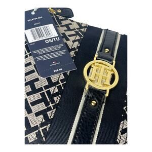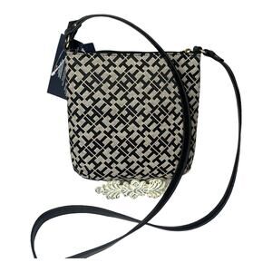 NEW Tommy Hilfiger CROSSBODY HANDBAG Black Tan Jacquard Faux Leather Logo Purse