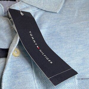 This listing is for a BRAND NEW WITH TAGS Tommy Hilfiger Custom Fit Polo Shirt in a classic heathered light blue color. Made from 100% cotton, this premium polo features the signature embroidered Tommy Hilfiger flag logo on the chest, a two-button placket, and a rib-knit collar and cuffs. Designed with a custom fit for a modern, tailored look that’s both comfortable and versatile.