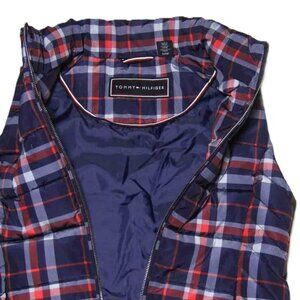 NEW Tommy Hilfiger Quilted Vest Zip Front Red White Blue Plaid Men's Size Small
