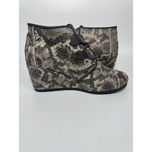 NEW Toms Kala Leather Snakeskin Print Lace Up Wedge Booties Womens 9
