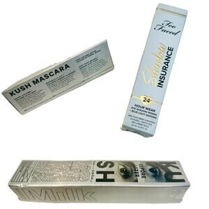 NEW Too Faced Shadow Insurance + Milk Kush High Volume Mascara in Large + Travel