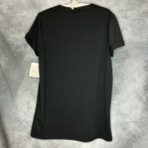 NEW Top T Shirt Women S Heart Logo Streetwear Comfy Packable Minimalist Lularoe Size Small runs large would probably fit medium. Brand new with tags attached. Black with red/pink heart. Soft fabric 95% polyester 5% spandex for comfort and stretch. Made in Mexico Machine wash cold gentle cycle. Hang to dry. Longer style T shirt.