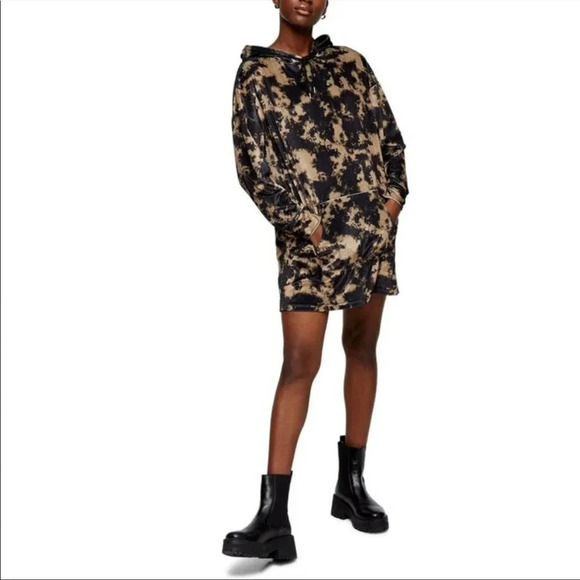 NEW TopShop Acid Wash Tie Dye Pullover Velvet Hoodie Sweatshirt Size US 4 Small