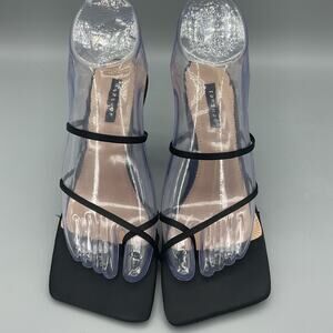 NEW TopShop Women’s Rolo Strippy Heeled Mule Sandals Black Size 6