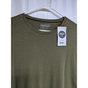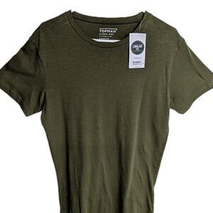 NEW Topman Shirt Men Small Longline Fit Long Tors T-shirt Olive Green Crew Tee S