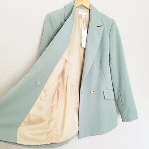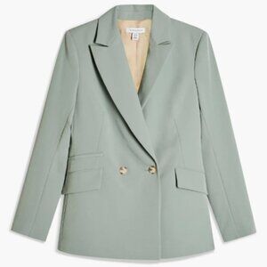 NEW Topshop Kiki Double Breasted Blazer Jacket Size 6 Sage Green Retro Chic $95