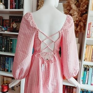 NEW Topshop Pink Stripe Textured Elastic Back Lace Detail Midi Dress P1306