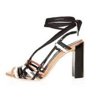 Topshop multi-colored ankle wrap sandals.