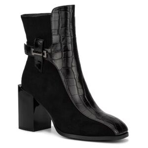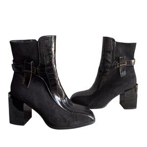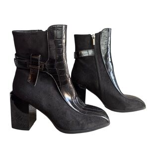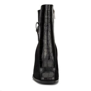 NEW Torgeis Fontaine Black Croc-Embossed Block Heel Ankle Boots w/ Buckle Sz 8