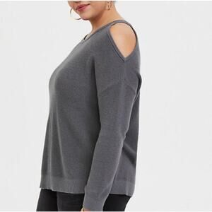 NEW Torrid 1X Grey Ribbed Cold Shoulder Crew Neck Long Sleeve Sweater