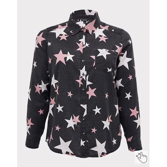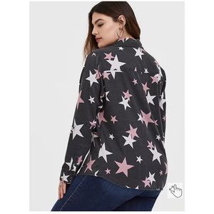 NEW Torrid 4 Taylor - Black Burnout Star Button Front Relaxed Fit Shirt