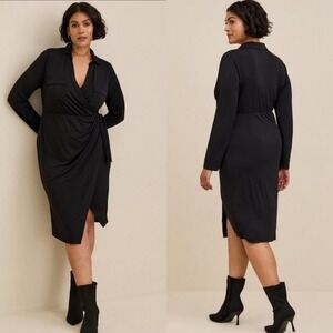 NEW Torrid At The Knee Studio Knit Collared Dress 6 6X Black Stretch NWT