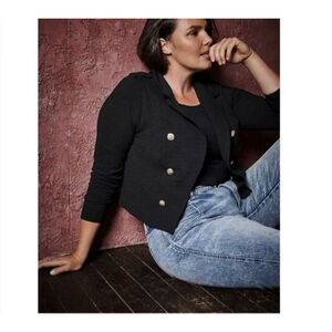 NEW Torrid Black Cropped Military Jacket Long Sleeve Open Front