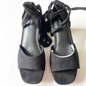 New without tag Torrid black embellished wrap faux suede platform heel. Size 11.5 Wide Width.