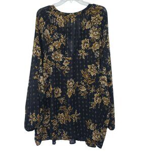 NEW Torrid Black Gold Floral Sheer Blouse Office Work Boho Long Sleeve Top