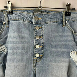 New with Tags, Boyfriend Vintage Stretch Mid-Rise Short by Torrid. Light Blue Wash - Destructed Wild Blues. Vintage Stretch Denim: The feel and look of classic denim with just that perfect amount of stretch. Stretch level: Medium. 5-pocket design. Exposed Front Button Fly. Floral Pockets Peek through Distressed Parts. Women Plus Size 26.
