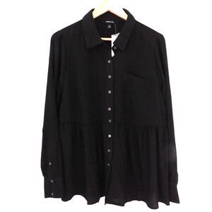 NEW Torrid Gauze Button up Shirt Peplum Long Sleeve Black Size 1 1X