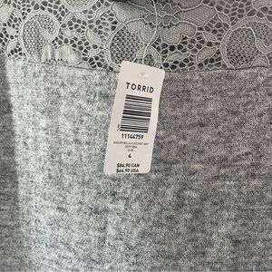 NEW Torrid Gray Bell Sleeve Sweater Dress Lace Inset Size 4X