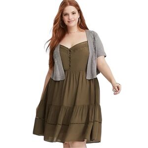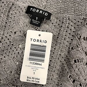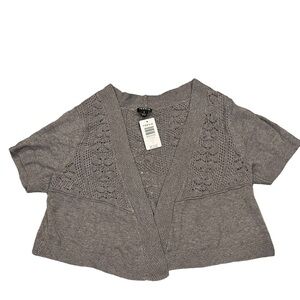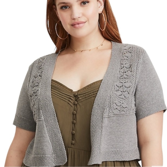 NEW With Tag Torrid Gray Pointelle Open Front Short Sleeve Shrug Cropped Cardigan Sweater size 1X