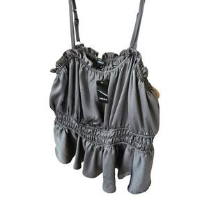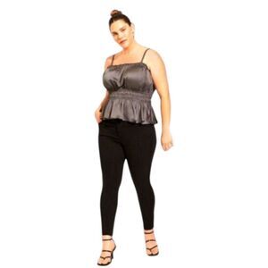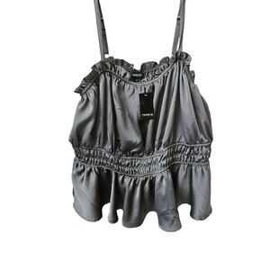NEW Torrid Plus Size Peplum Satin Square Neck Crop Cami In Dark Silver.