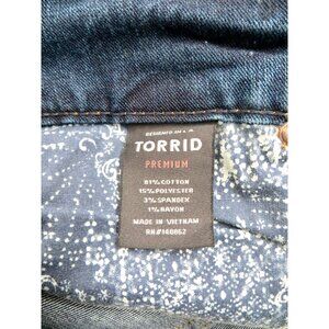 Description: These are genuine Torrid Premium Denim Jeans Jeggings. No rips, tears, marks, stains, flaws or defects. NO damages. The jeans feature 5 pocket design, manufacture intentional fading, higher rise, soft cotton with polyester and spandex blend fabric, has stretch, machine washable, imported. Retail $74.90